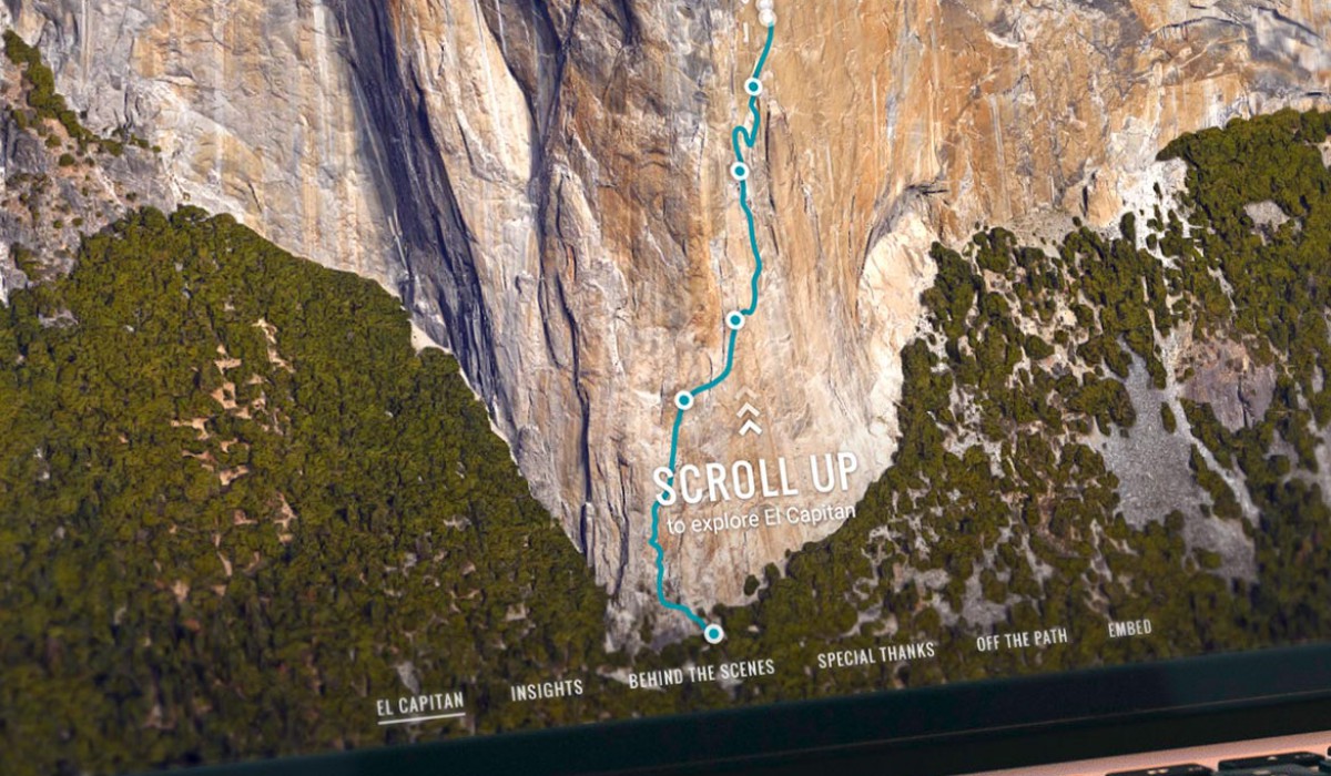 Google launched his first-ever vertical Street View, giving users the opportunity to climb 3,000 feet up the world’s most famous rock wall: Yosemite’s El Capitan. The microsite provides 360-degree panoramic images which are the closest thing ever to actually being thousands of feet up a vertical rock face. My role: concept, design