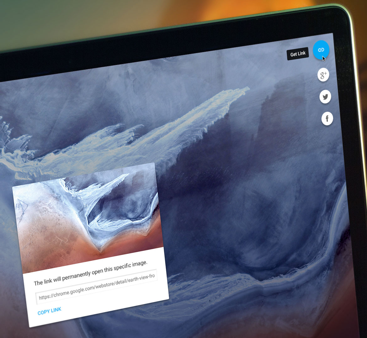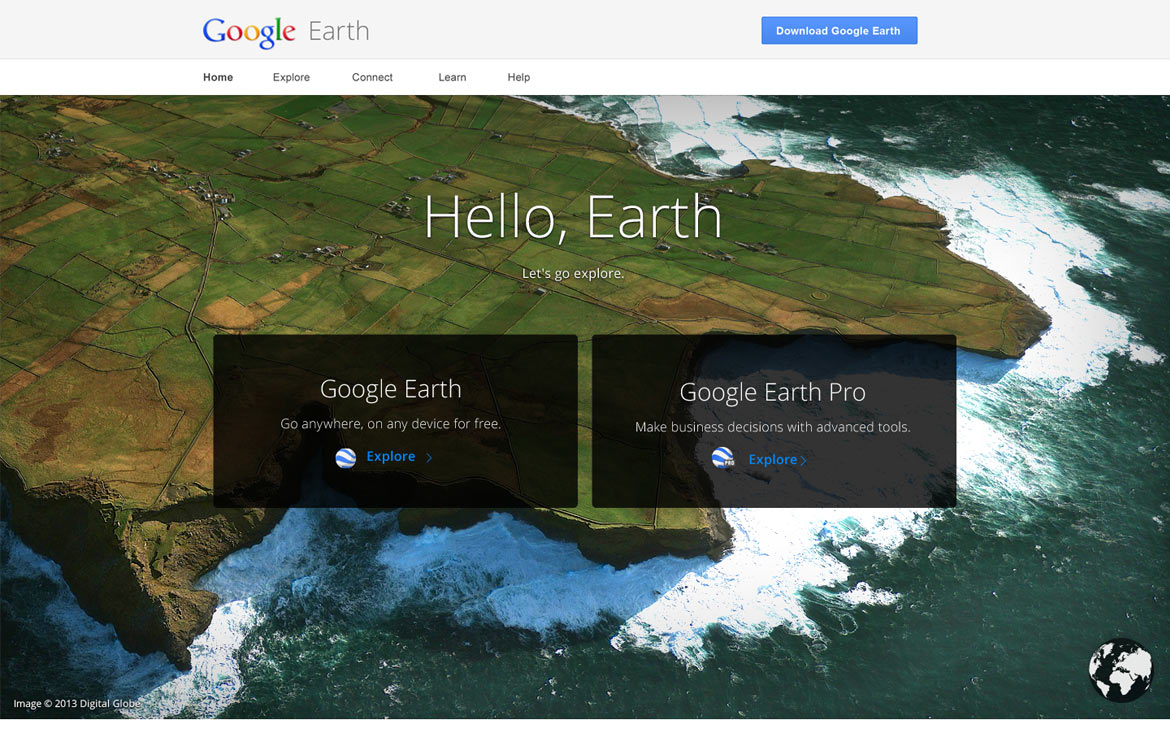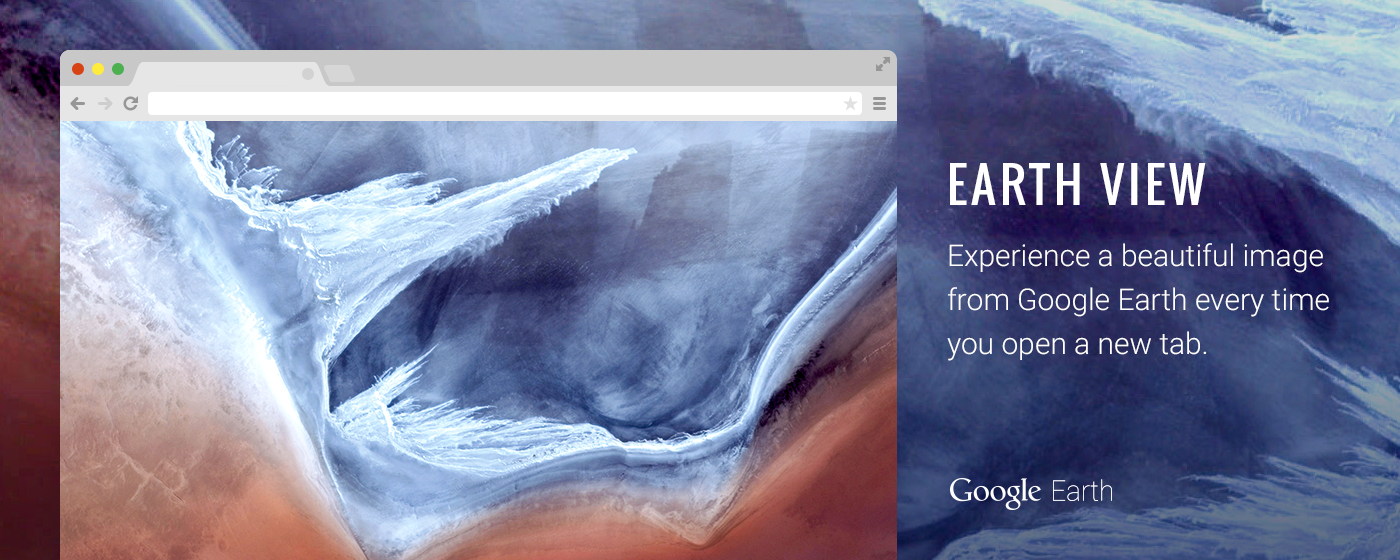 Earth View is a collection of the most beautiful and striking landscapes found in Google Earth. What started as an easter egg idea for the Google Earth „about“ website quickly became one of the most popular topics in the Google Maps community. The latest iteration is the Chrome browser extension which displays a beautiful and unique Satellite image from Google Earth every time you open a new tab.
