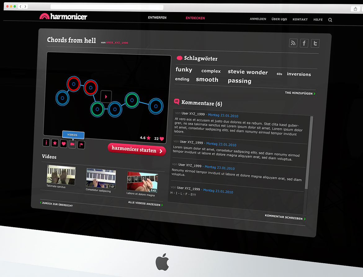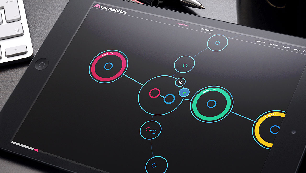 Harmonicer is an interactive application that lets you create, categorize, share, and store your favorite chords and progressions in one easily accessible place. By focusing primarily on the sound of harmonic structures the app provides a gentle learning curve for beginners without excluding the more advanced musicians.