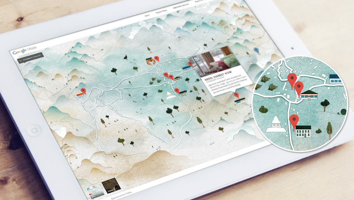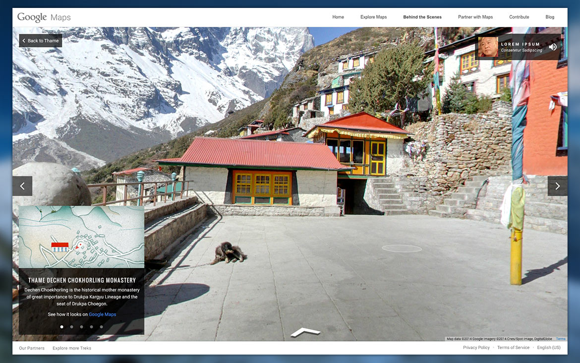 In the shadow of Mt. Everest lies a group of sacred valleys known as the Khumbu. For centuries this remote mountainous region has been the homeland of the Sherpa people. The Google Street View imagery takes armchair travelers around the region and communities at the base of the mountain, such as the Phortse, Khumjung, Thame, Lukla, and the Namche Bazaar.
